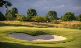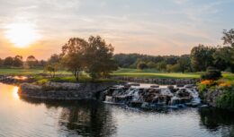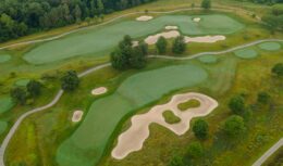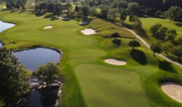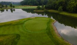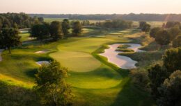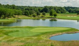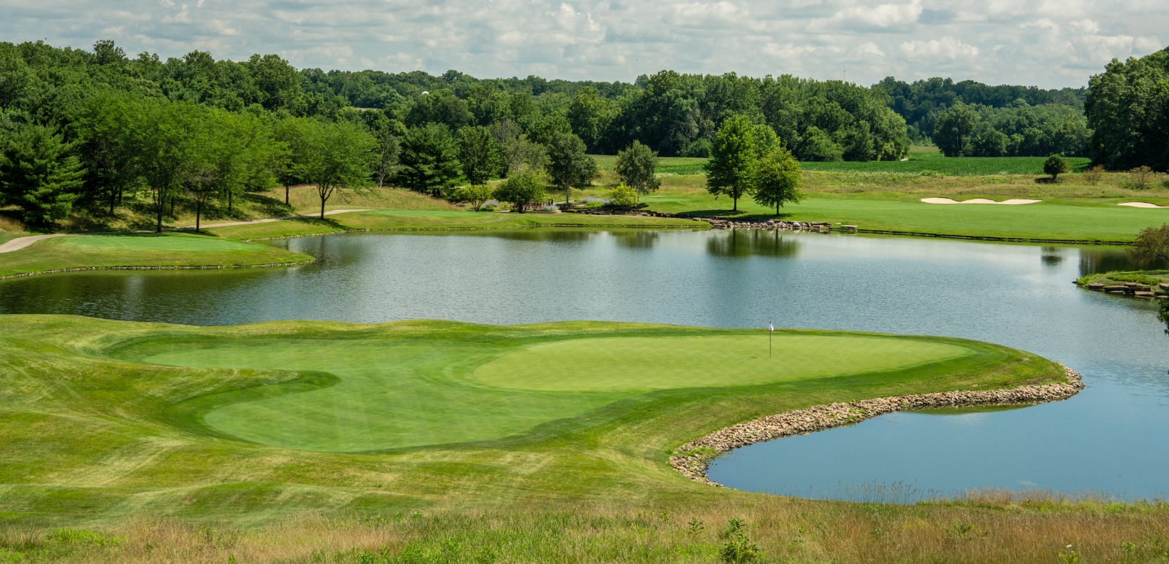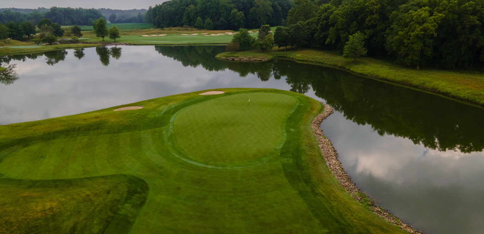 Wide bent grass fairways (averaging more than 50 yards wide) and large bent grass greens (averaging more than 7,000 square feet) accentuate the natural beauty of woods and streams which are prevalent around the course, first experienced by explorer George Rogers Clark on this land in the late 18th century.